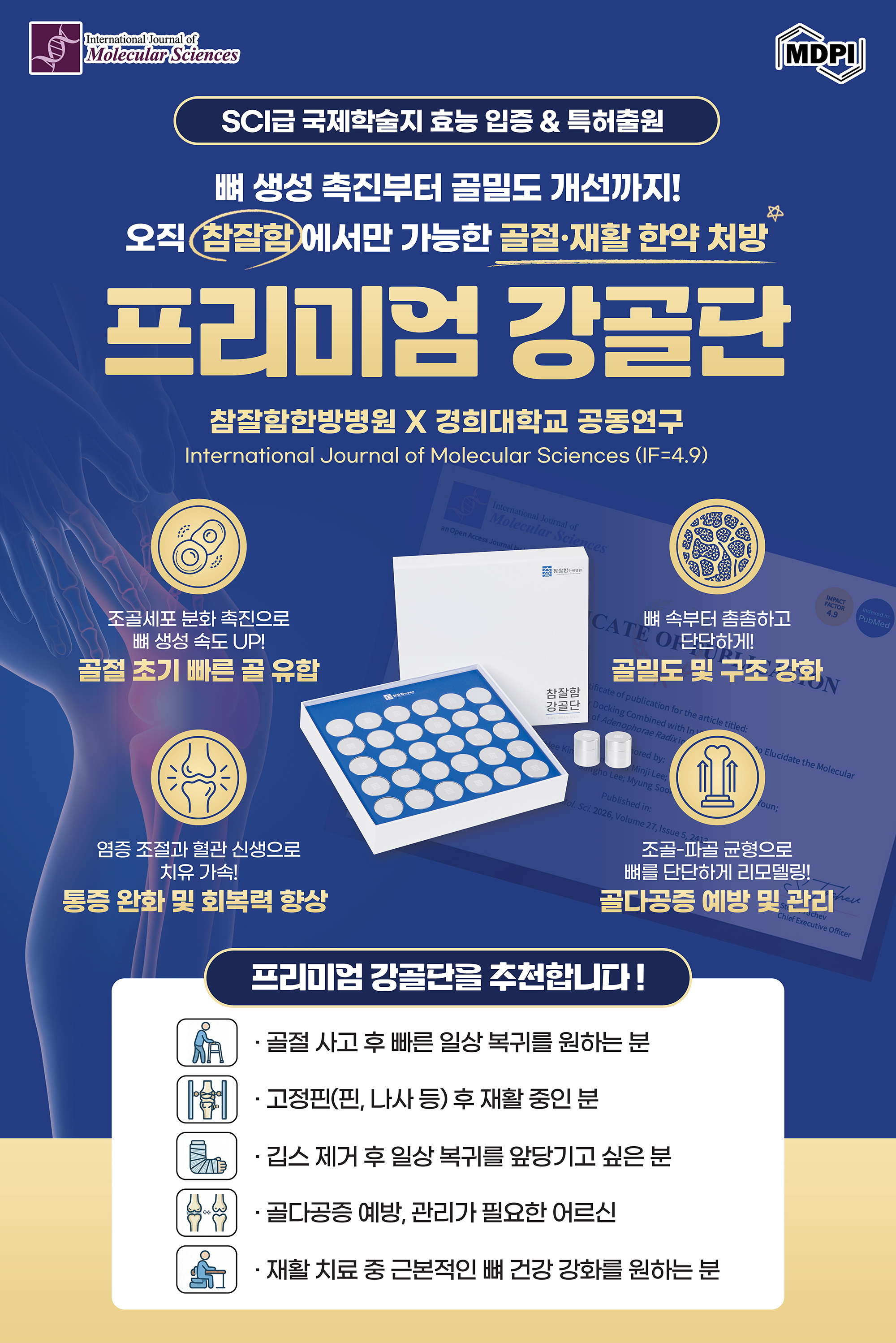 | 골절 재활 한약처방 프리미엄 강골단, SCI급 저널 게재 & 특허 출원 |